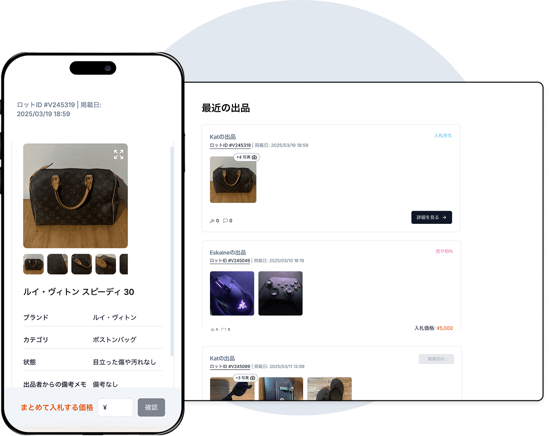 ログイン後、すぐに商品検索・入札が可能です。必要に応じてサポートチームが丁寧にご案内いたします。
